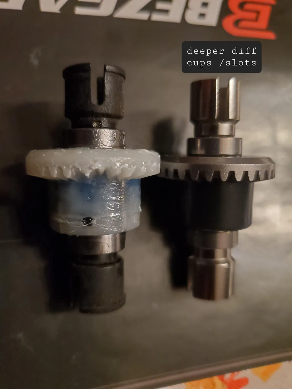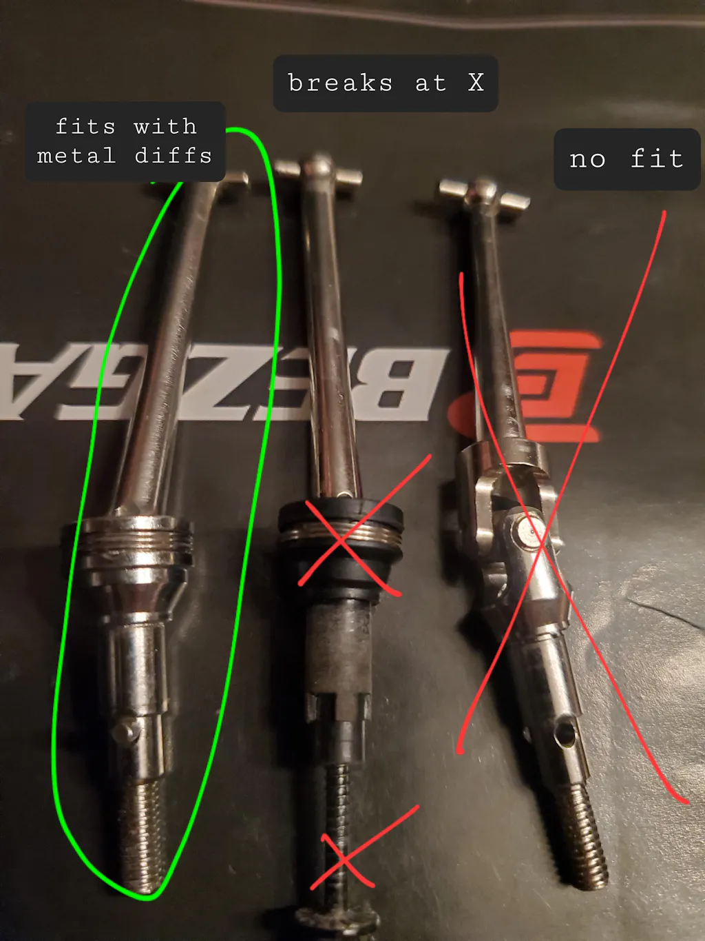 This is the cheaper version because of the plastic gearset, differential cups, and axle ends. The drive axles will break after a short time, and the replacements will do the same. The plastic gears will strip next, then the diffs, and evntually the scews that hold the wheels on will go and those turned out to be irreplaceable. We have two of these cars and both have the same issues. I've tried the "upgrade" all-metal driveshafts and many do not fit well and none worked with the stock diffs. You'll also have to convert it to pinlock axles when the screws break as they dont sell the screws. You need to upgrade the diffs and the driveshafts and find a combo of the two that doesn't bind during shock compression. (Metal ones are about 1mm longer than the plastic)